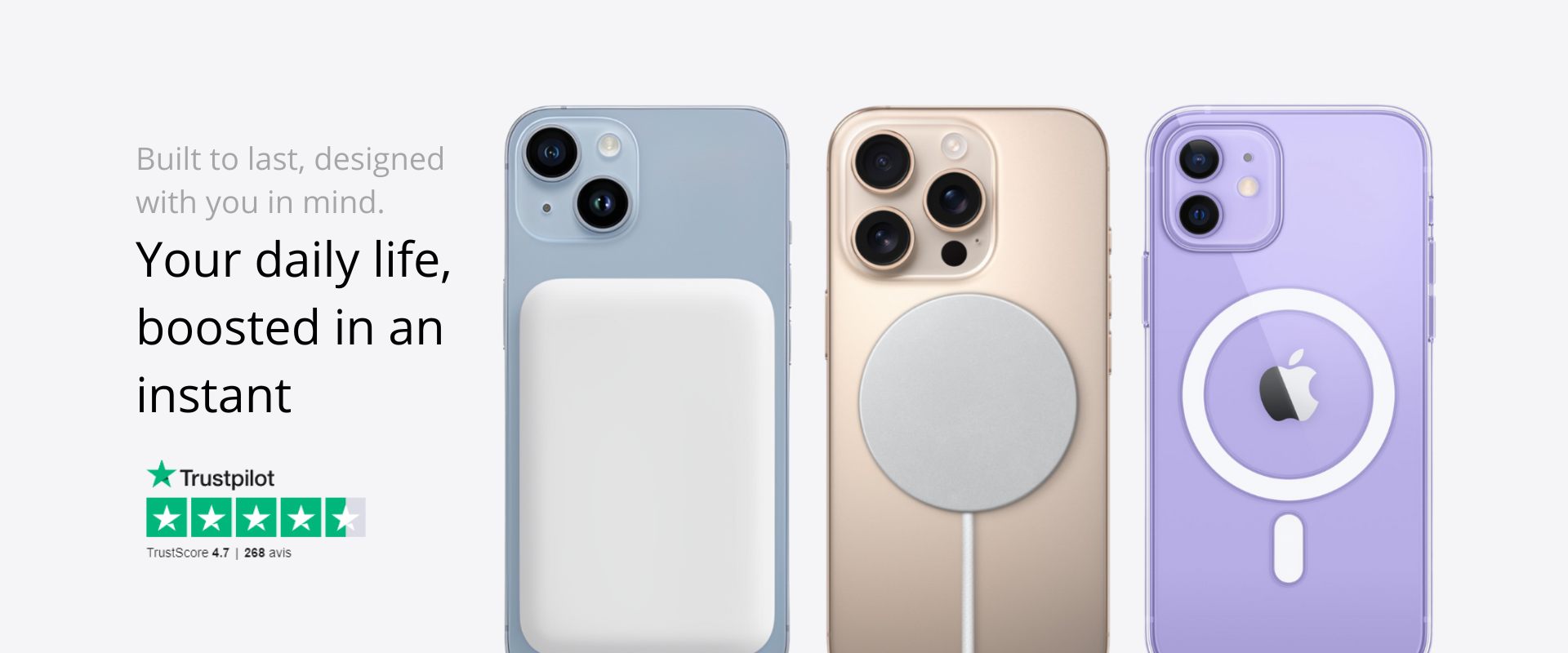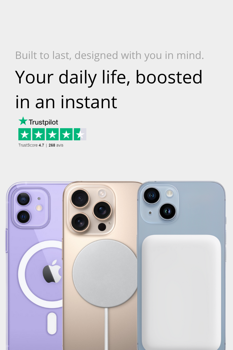 Simplify your daily life with our magnetic accessories: shell, charger and external battery designed for quick, practical and wireless use.